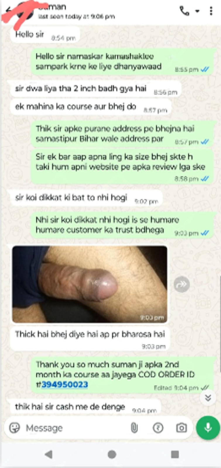 This is best for men with short penish and lack of sex timing...jisse meri jaisi kitni sari females ko sex ka mja nhi mil paata hai..mere Husband ka penis kafi badh gya hai ab mujhe vo har bar thaka dete hai... mai har bar discharge ho jati hu par vo nhi hote hai. mujhe mja bahut milta hai...ab unka adha penis bhi orgasm de deta hai...