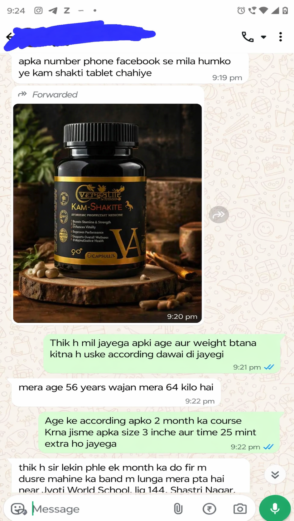 Main 2 mahine se is goli ko kha rha hu. Is adbhut goli ne meri kai sex problems ko mita diya...Is Kamashaktee Tablet ki goli se mera stamina, josh, timing aur penis size kafi jyada badhh gya hai..in dino me 7 cm se jyada size 25 minute se jyada timing badha hai.